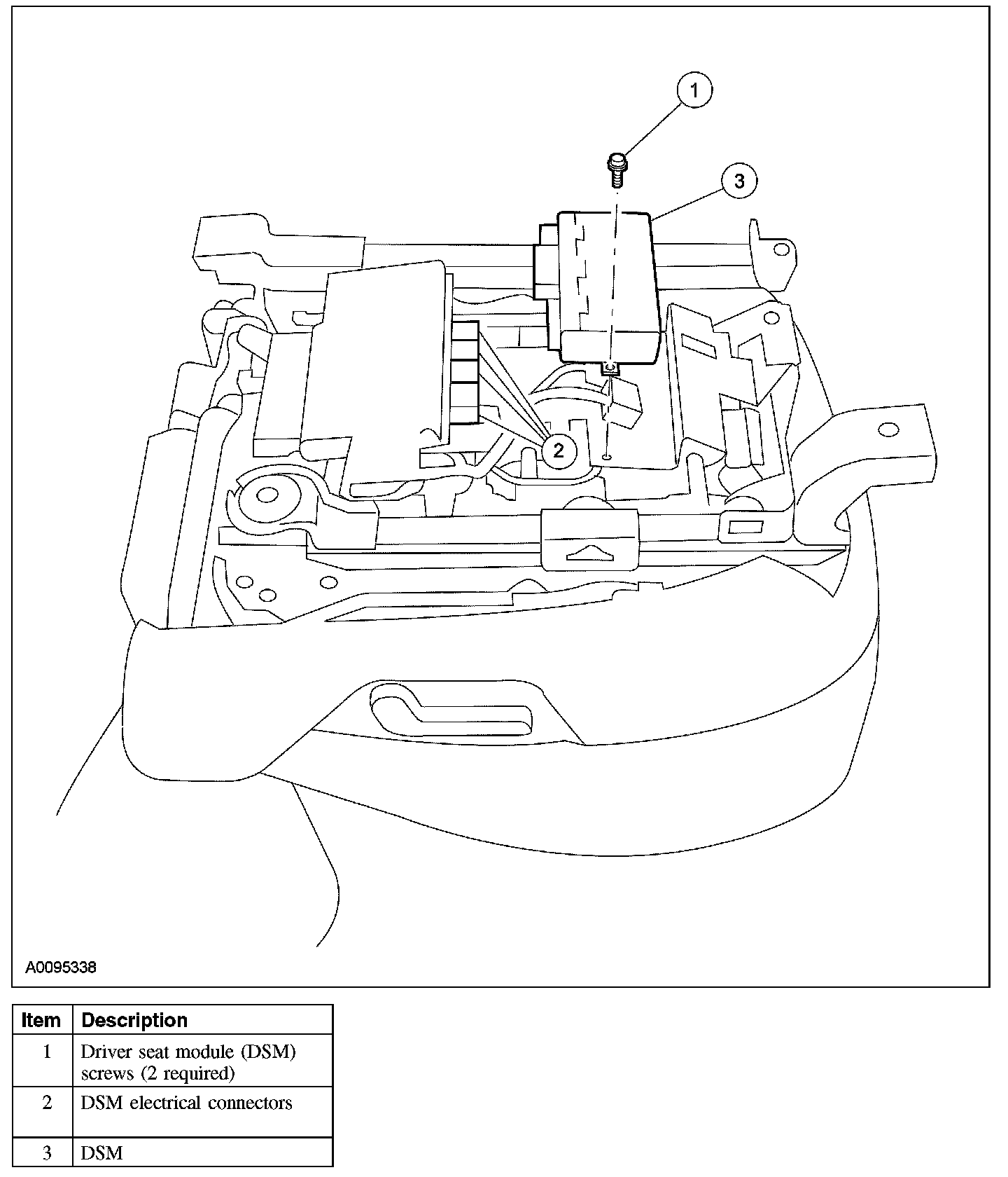 Home >> Ford >> 2007 >> Explorer 4WD V6-4.0L VIN K >> Repair and Diagnosis >> Powertrain Management >> Computers and Control Systems >> Relays and Modules - Computers and Control Systems >> Body Control Module >> Service and Repair >> Driver Seat Module (DSM)