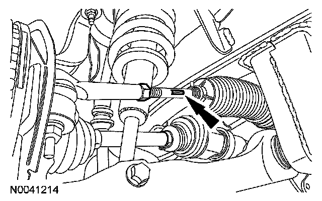 6. CAUTION: Make sure to hold the tie-rod end stationary while tightening the nut or damage to the steering gear bellows can occur.