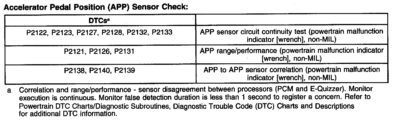 Accelerator Pedal Position (APP) Sensor Check: