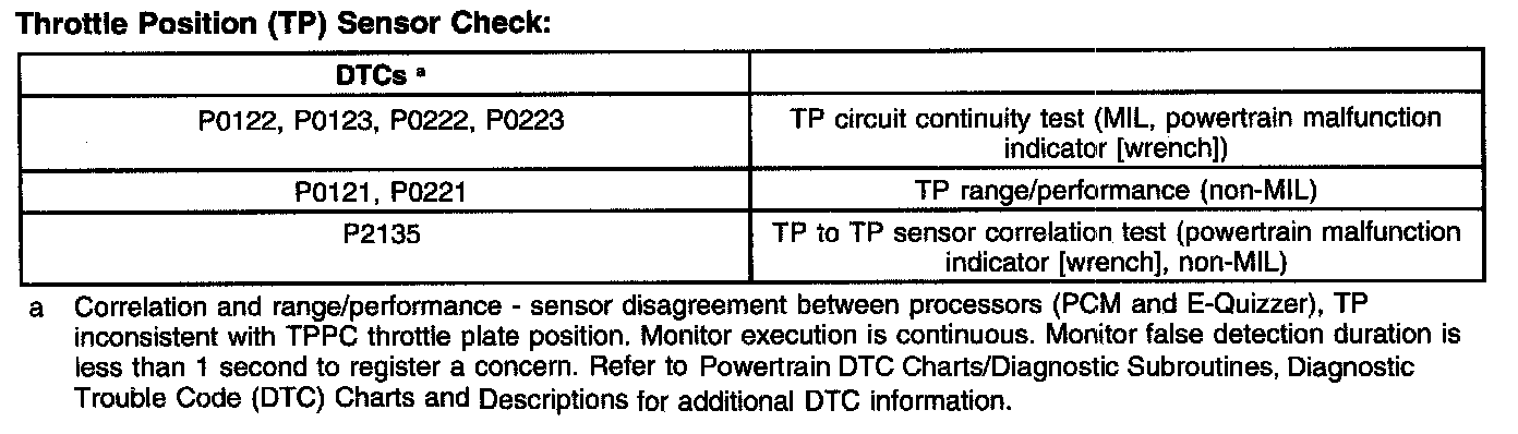 Throttle Position (TP) Sensor Check: