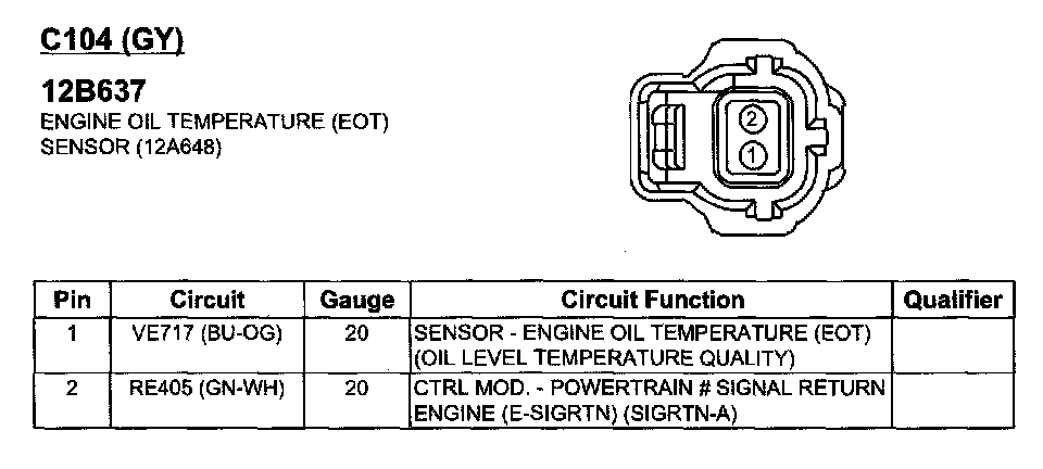 Oil Temperature Sensor For ECM: Diagrams