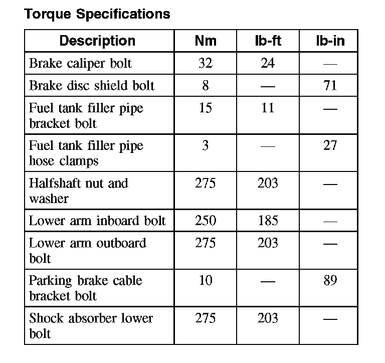 Torque Specifications