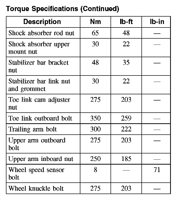 Torque Specifications (Part 2):