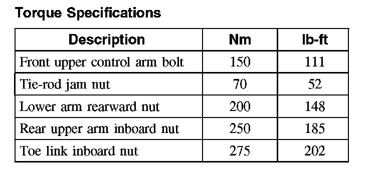 Torque Specifications: