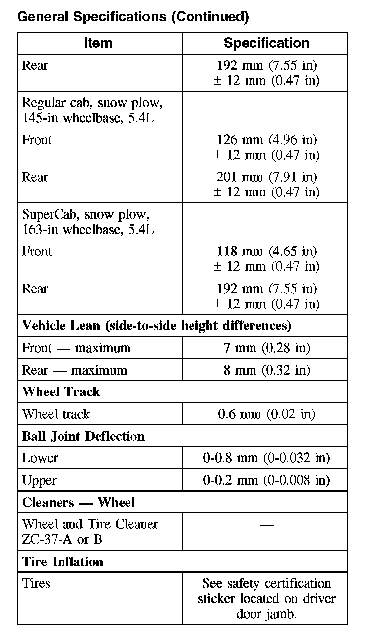 Torque Specifications: