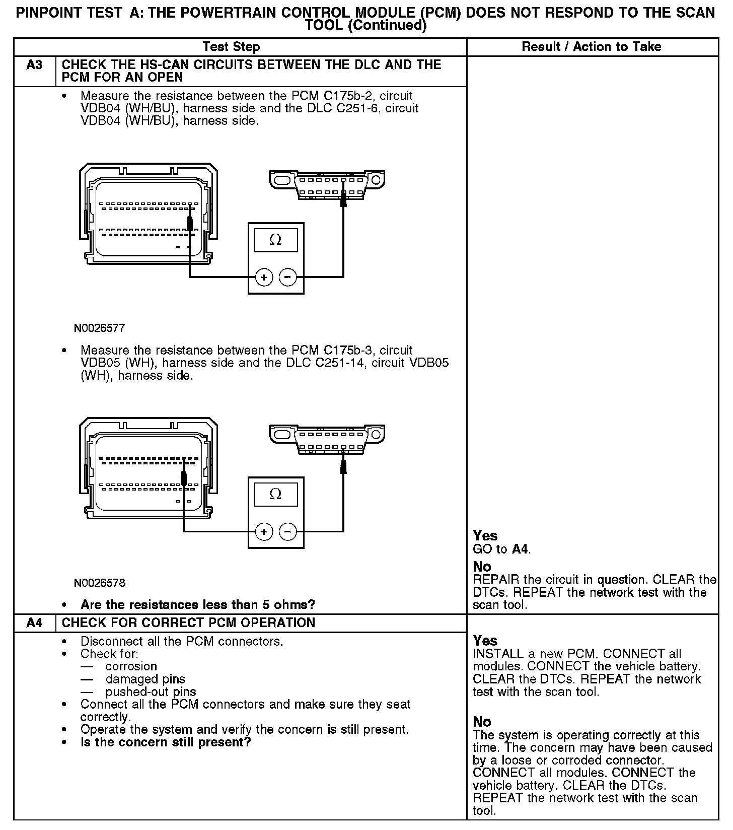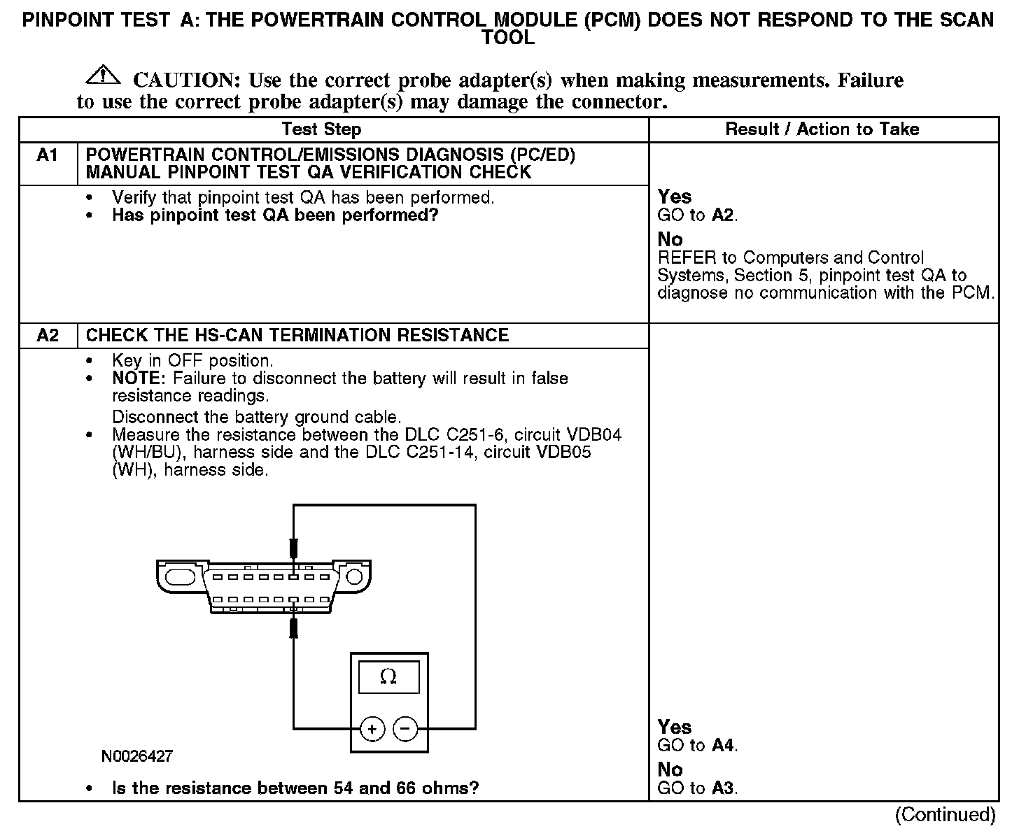 Home >> Ford >> 2007 >> F 150 2WD V6-4.2L VIN 2 >> Repair and Diagnosis >> Powertrain Management >> Computers and Control Systems >> Information Bus >> Testing and Inspection >> Pinpoint Tests >> Test A: The Powertrain Control Module (PCM) Does Not Respond to the Scan Tool