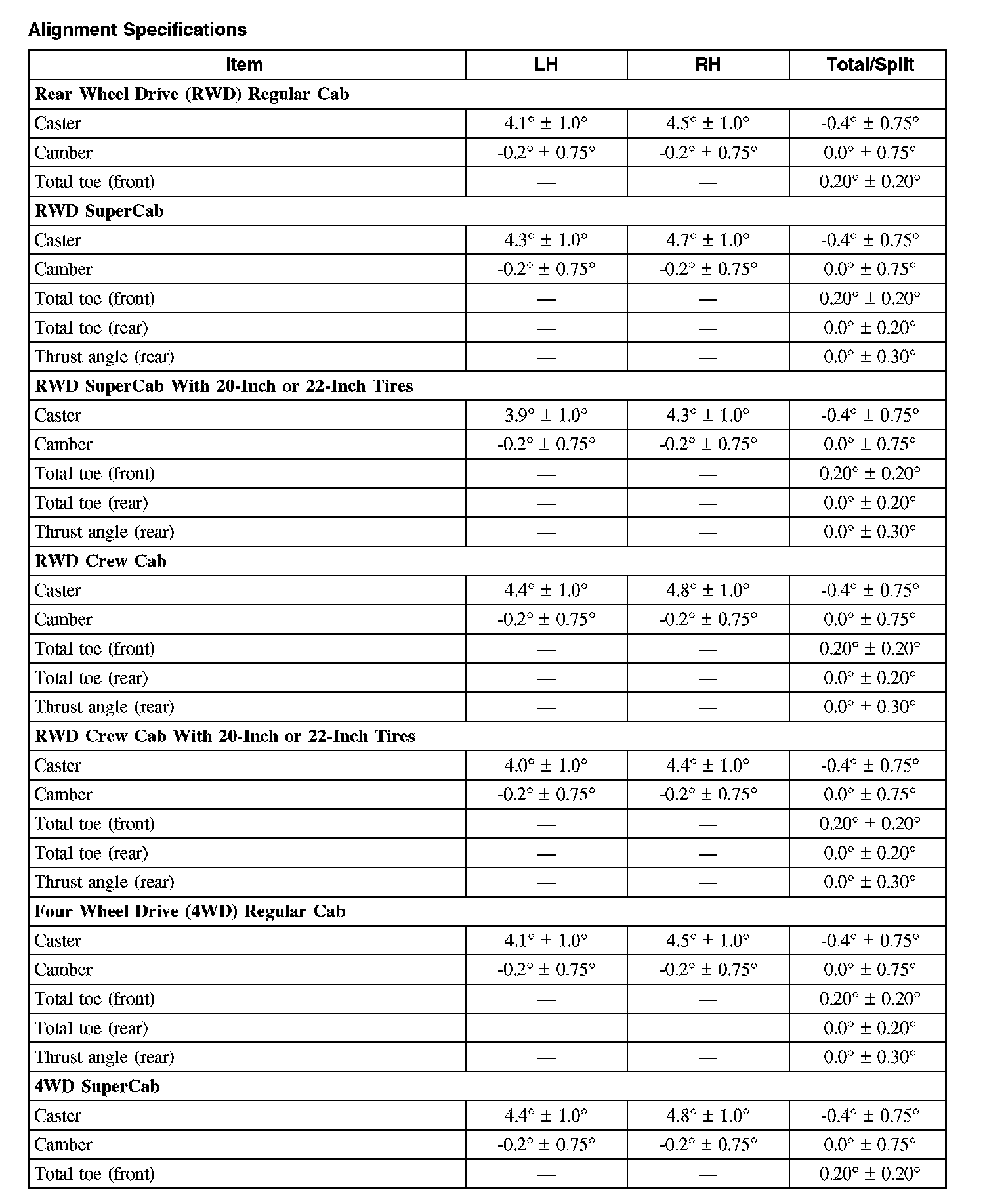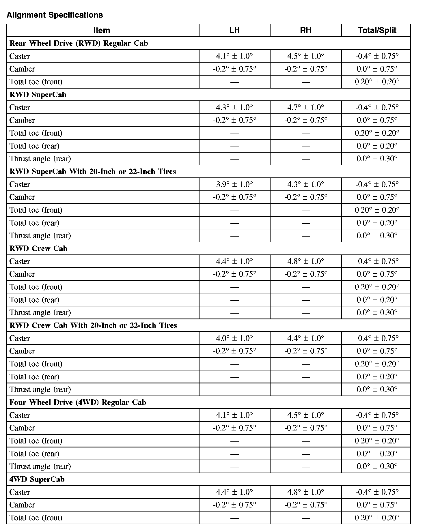 Alignment Specifications: