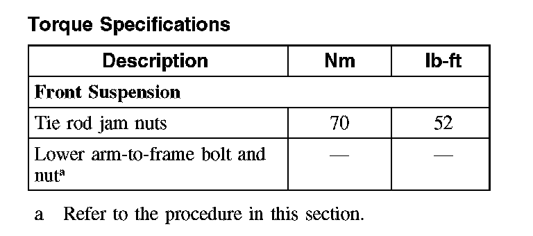 Torque Specifications: