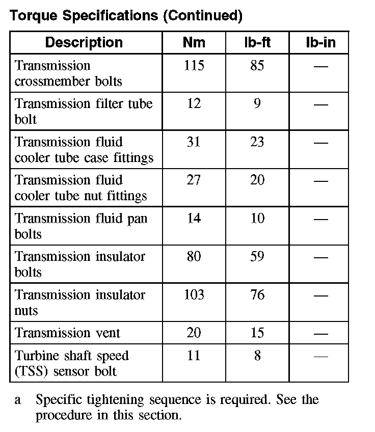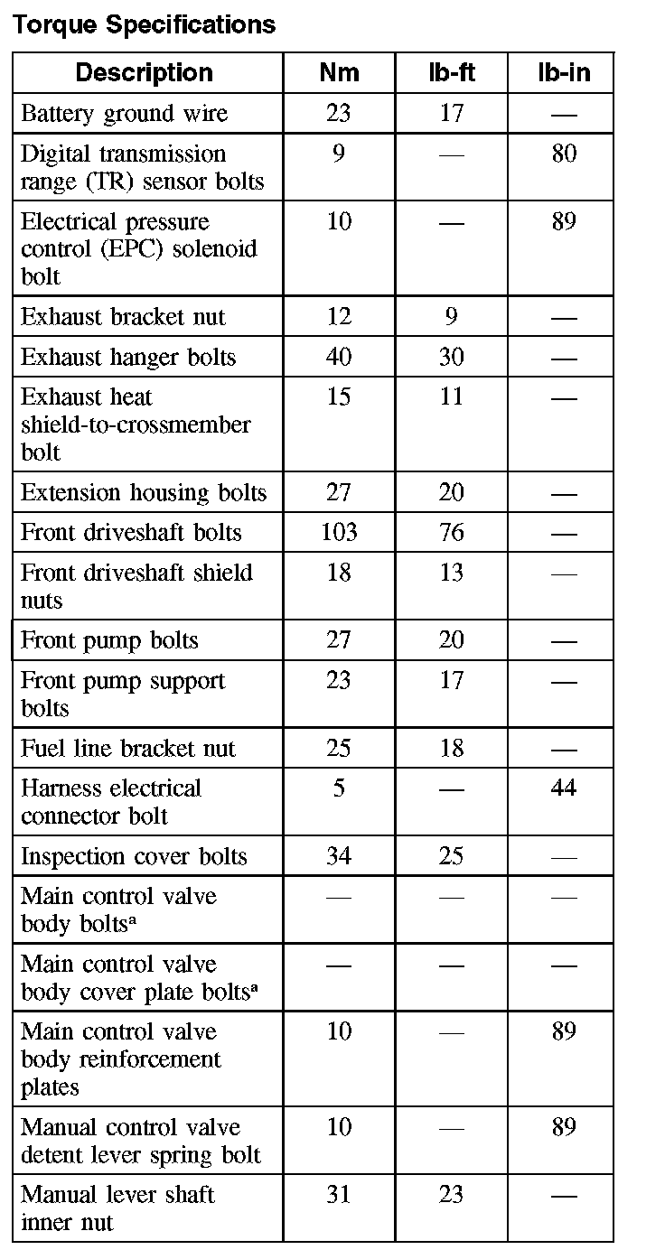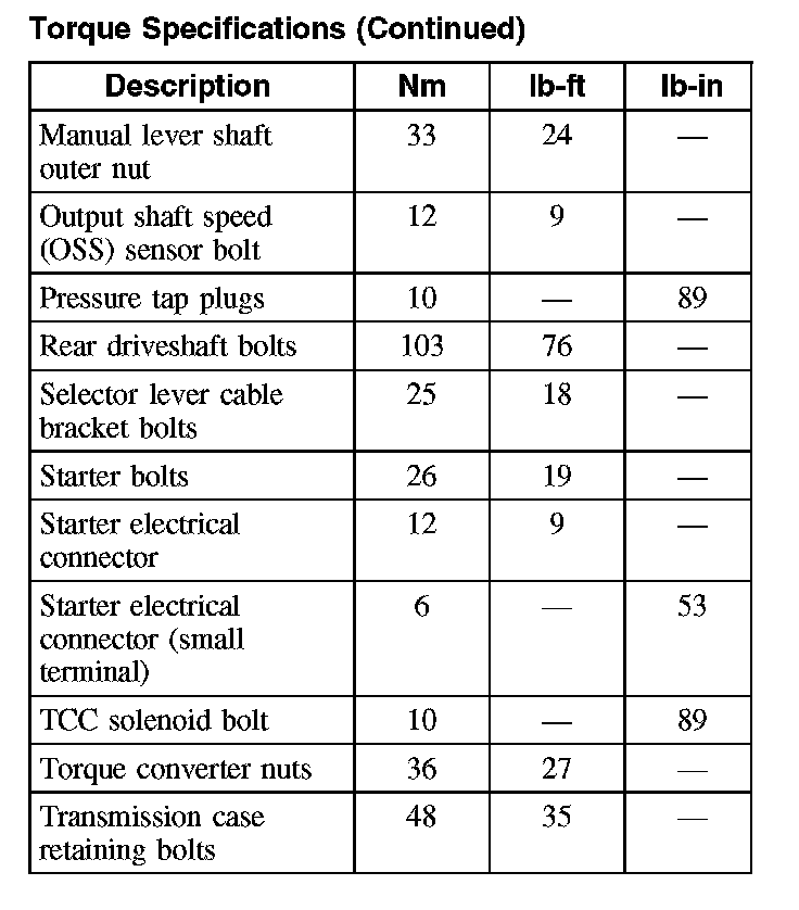 Torque Specifications