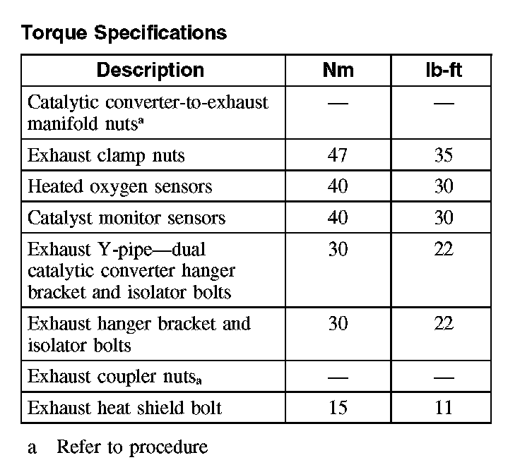 Torque Specifications: