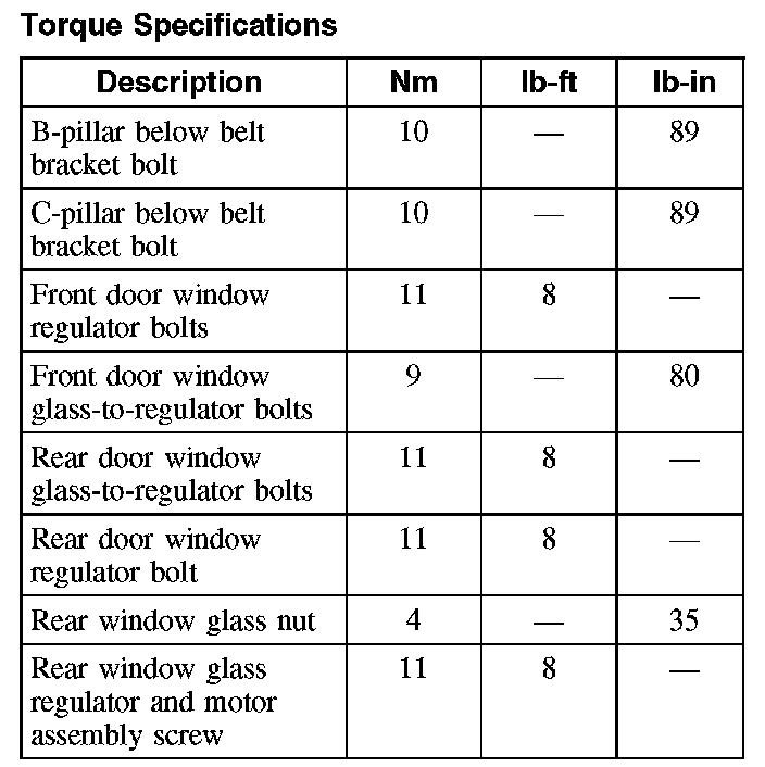 Torque Specifications: