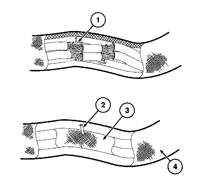 13. Use shielded heat gun to heat the repaired area until adhesive flows out of both ends of the heat shrink tubing.