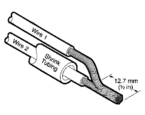 NOTE: Overlap tubing on both wires.
