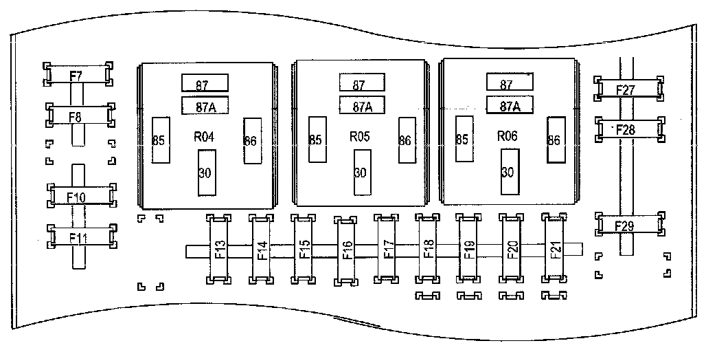 Fuse and Relay Information contains a view of the fuse/relay box in which all fuses and relays are identified, numbered and named. Fuse and relay numbering and naming follow the indication of the fuse panel cover. In addition, for all removable relays, pin positions are added to illustrate proper orientation.