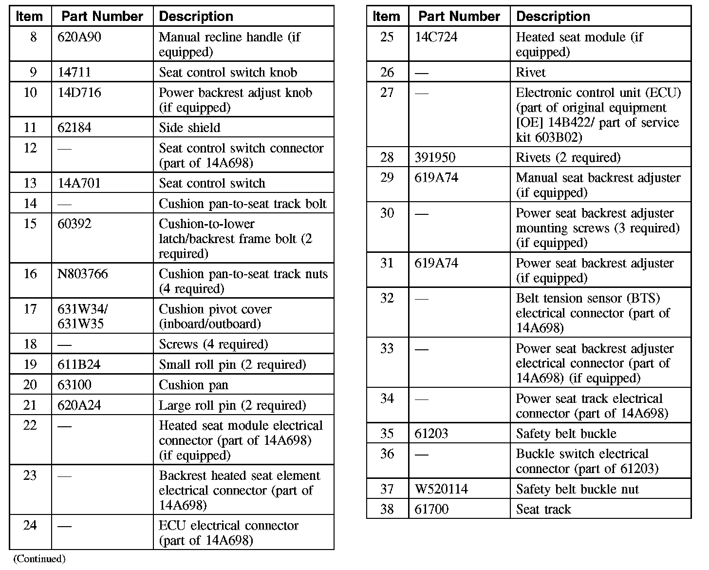 Driver Front Seat Cushions (Part 2):