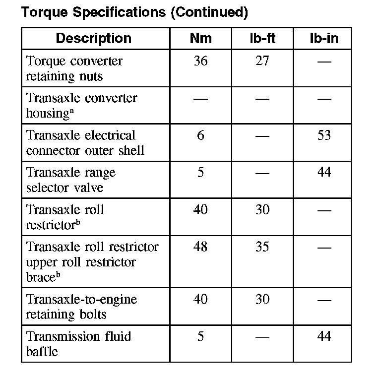 Home >> Ford >> 2007 >> Five Hundred AWD V6-3.0L VIN 1 >> Repair and Diagnosis >> Specifications >> Mechanical Specifications >> Continuously Variable Transmission/Transaxle, CVT >> System Specifications >> Torque Specifications