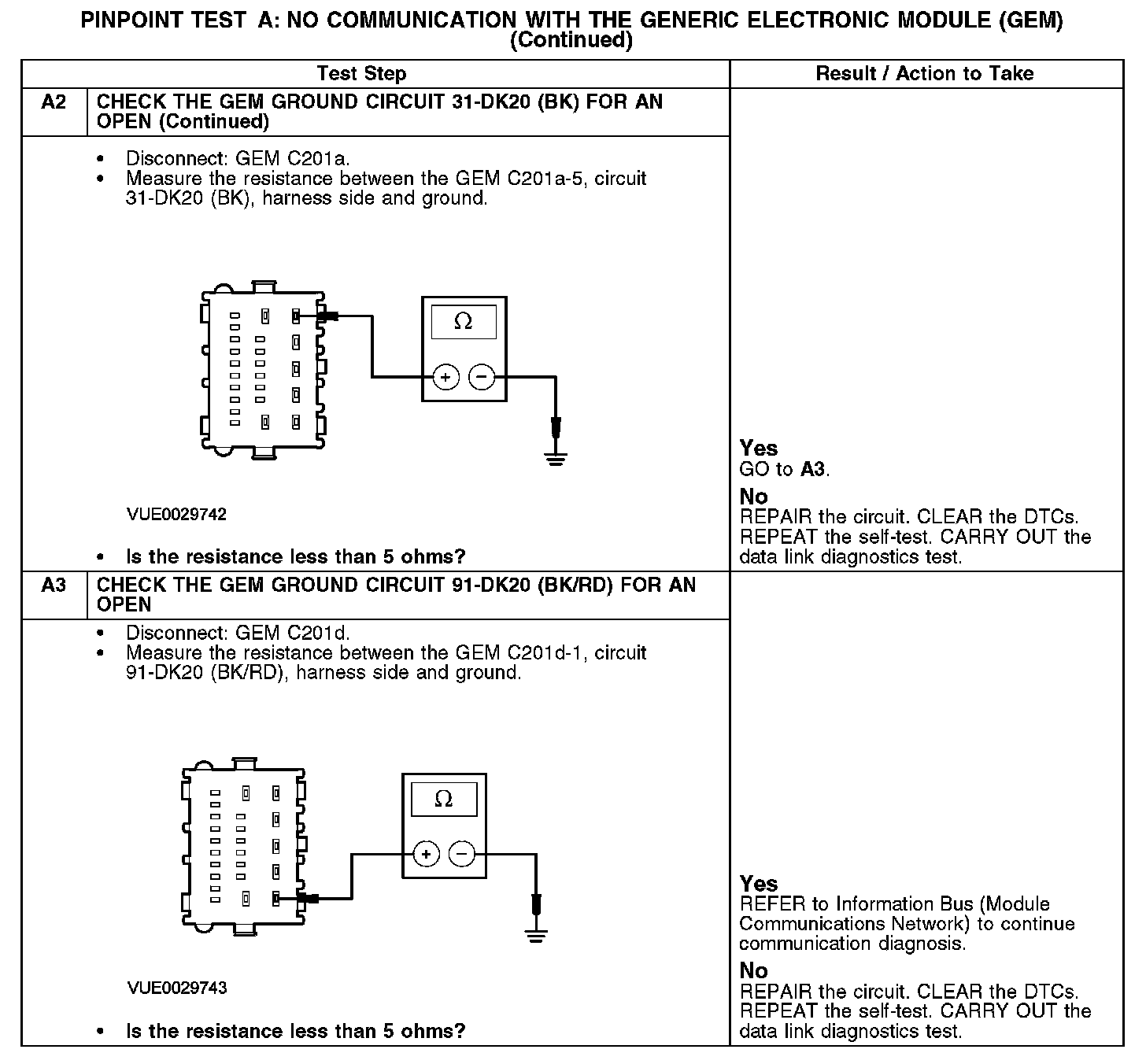 PINPOINT TEST A: NO COMMUNICATION WITH THE GENERIC ELECTRONIC MODULE (GEM)A1-A2: