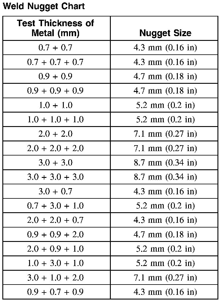 Weld Nugget Chart: