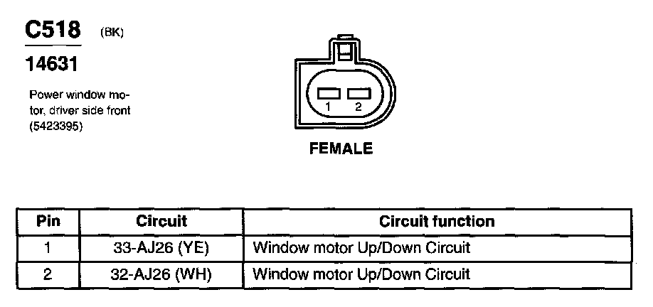 Power Window Motor, Driver Side Front