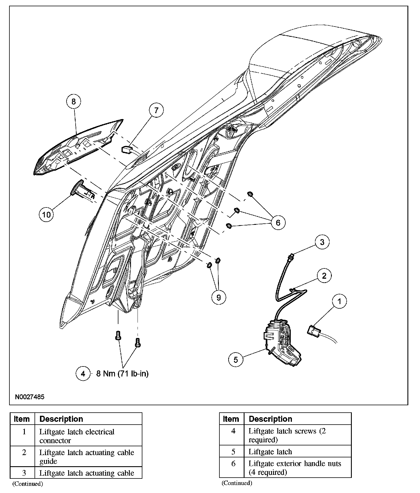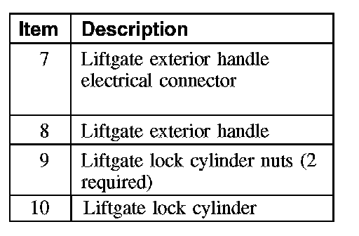 LIFTGATE HANDLE, LOCK AND LATCH - EXPLODED VIEW