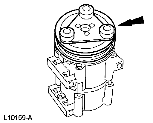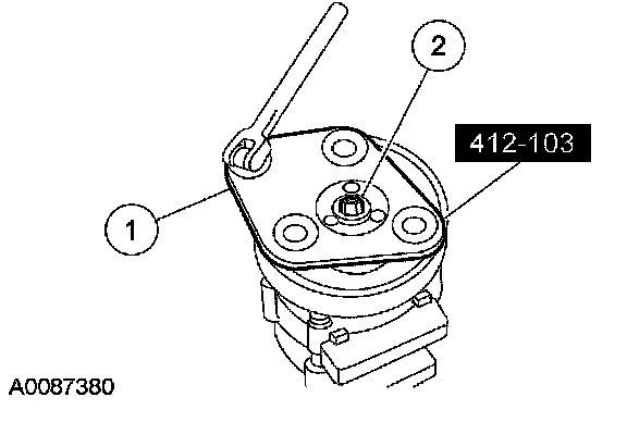1 Install the special tool on the nose opening of the A/C compressor.