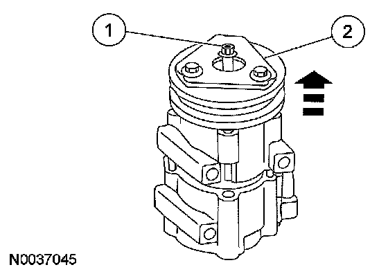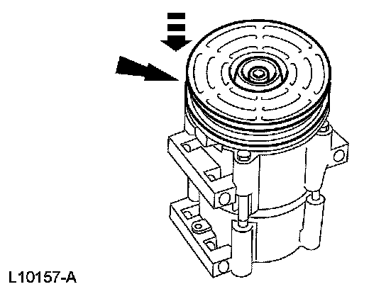 4. NOTE: The A/C clutch pulley is a tight fit on the A/C compressor head; it must be correctly aligned during installation.