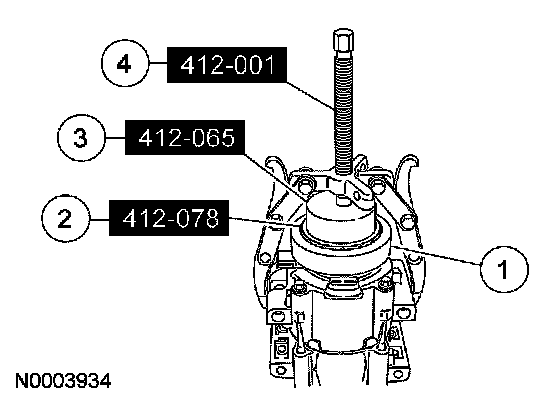 4 Use the special tool to install the A/C clutch field coil until bottomed completely against the A/C compressor.