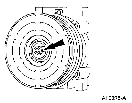 6. CAUTION: Do not use air tools. The A/C clutch field coil can be easily damaged.