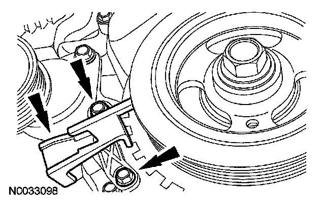 7. Install the crankshaft pulley shield and tighten the 2 retaining screws.