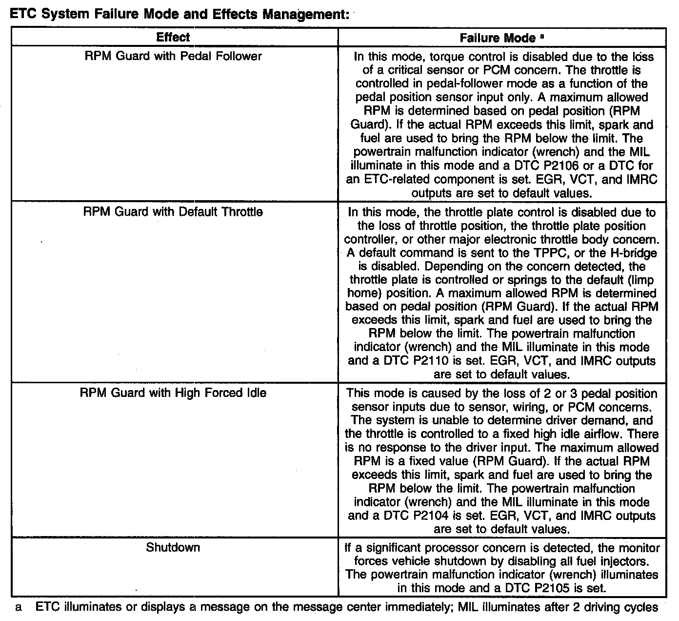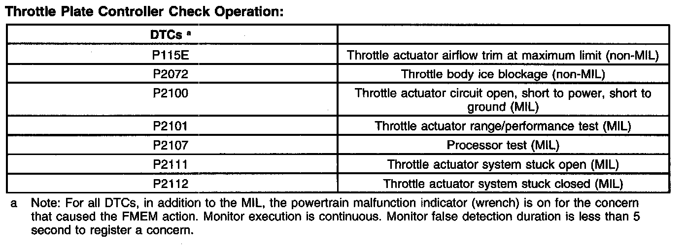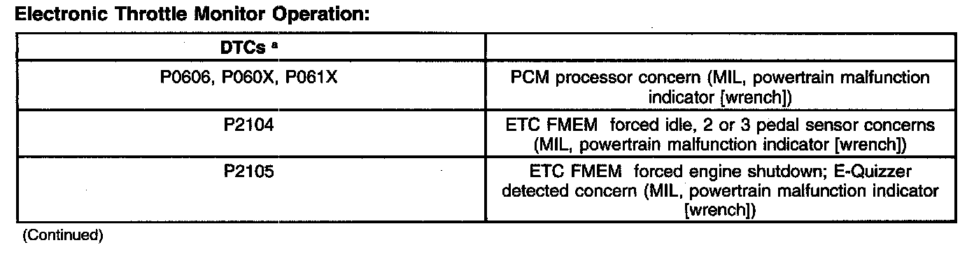 It should be noted that the ETC system illuminates a powertrain malfunction indicator (wrench) on the instrument cluster when a concern is present. Concerns are accompanied by diagnostic trouble codes (DTCs) and may also illuminate the malfunction indicator lamp (MIL).