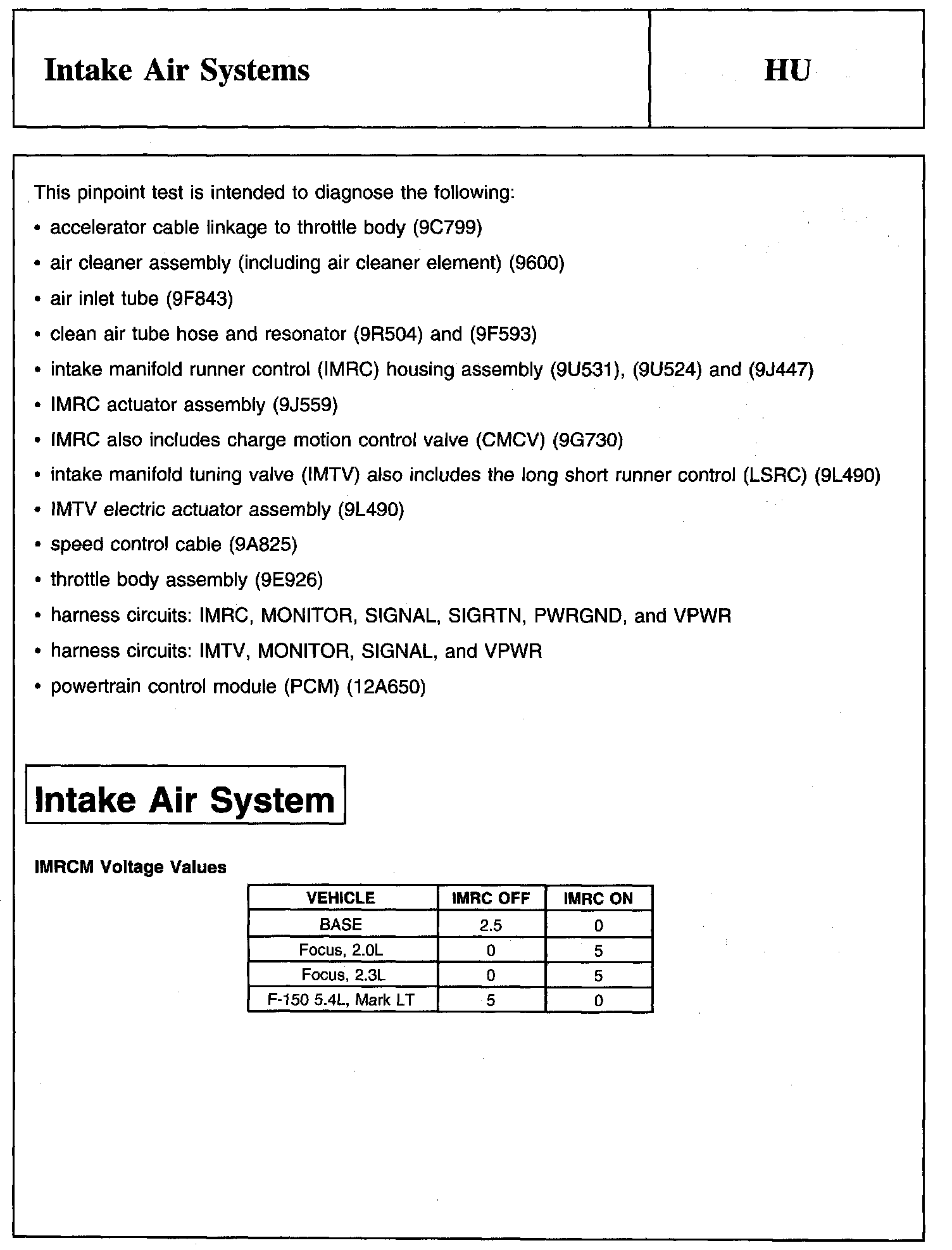PINPOINT TEST HU: INTAKE AIR SYSTEMS