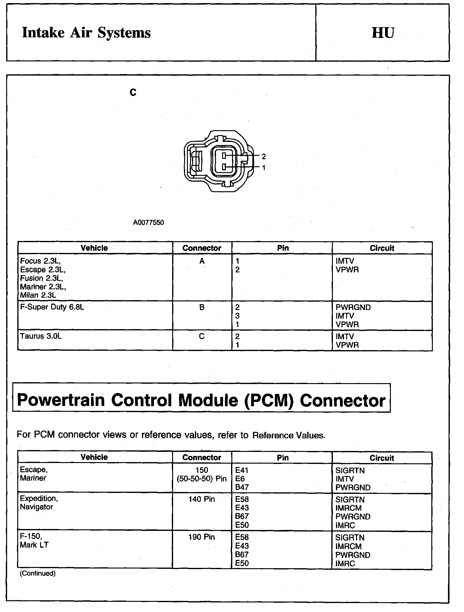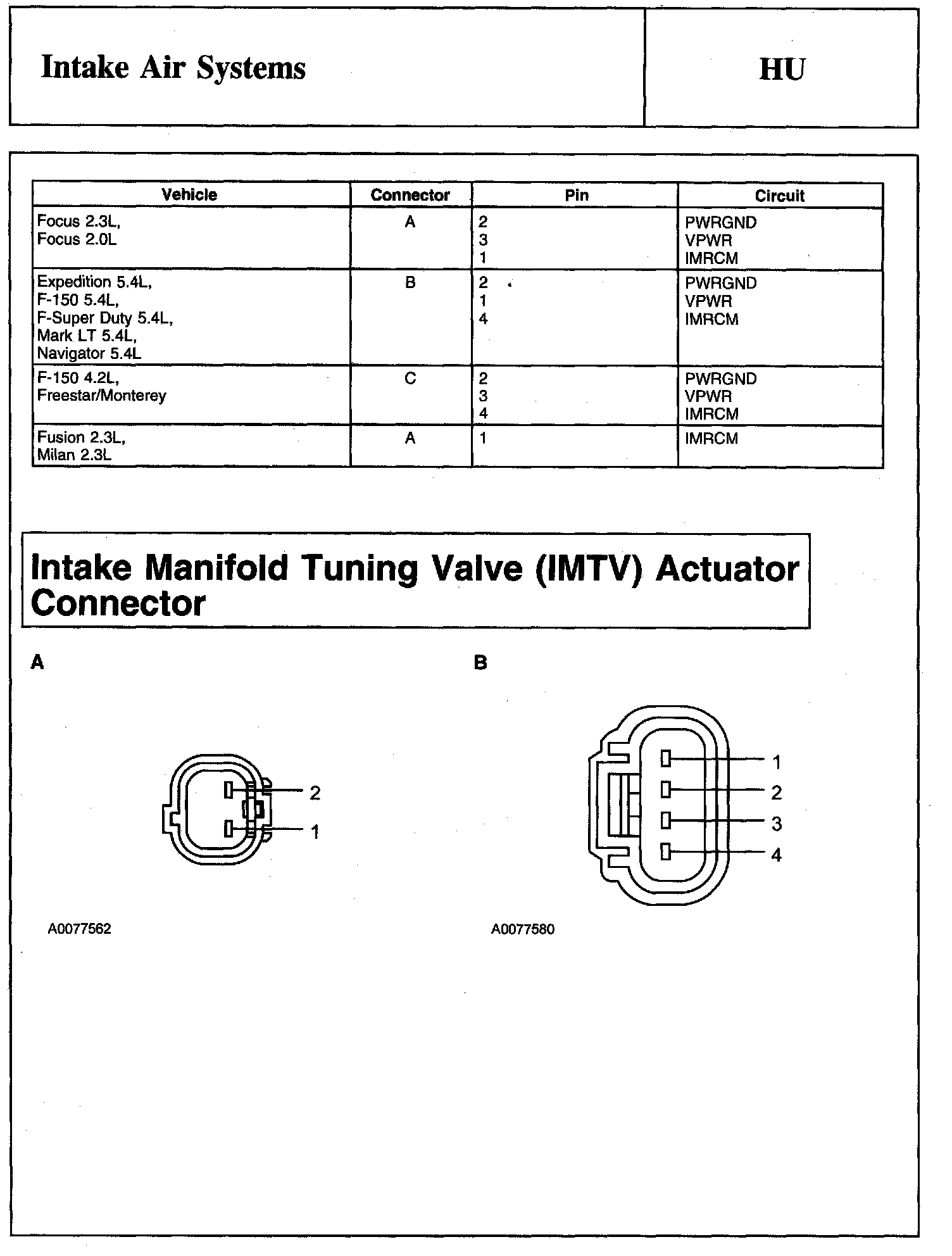 Intake Manifold Tuning Valve (IMTV) Actuator Connector And Powertrain Control Module (PCM) Connector: