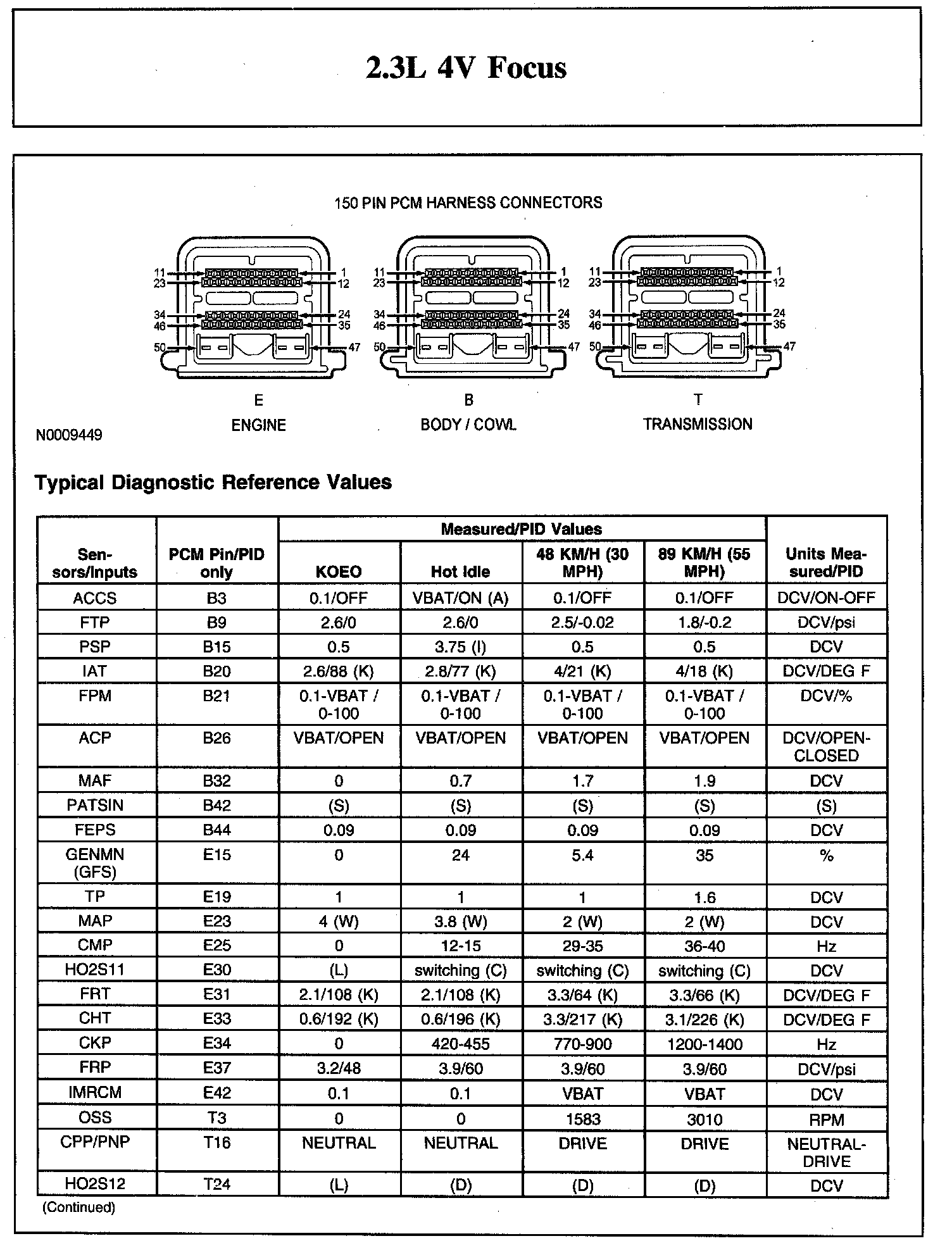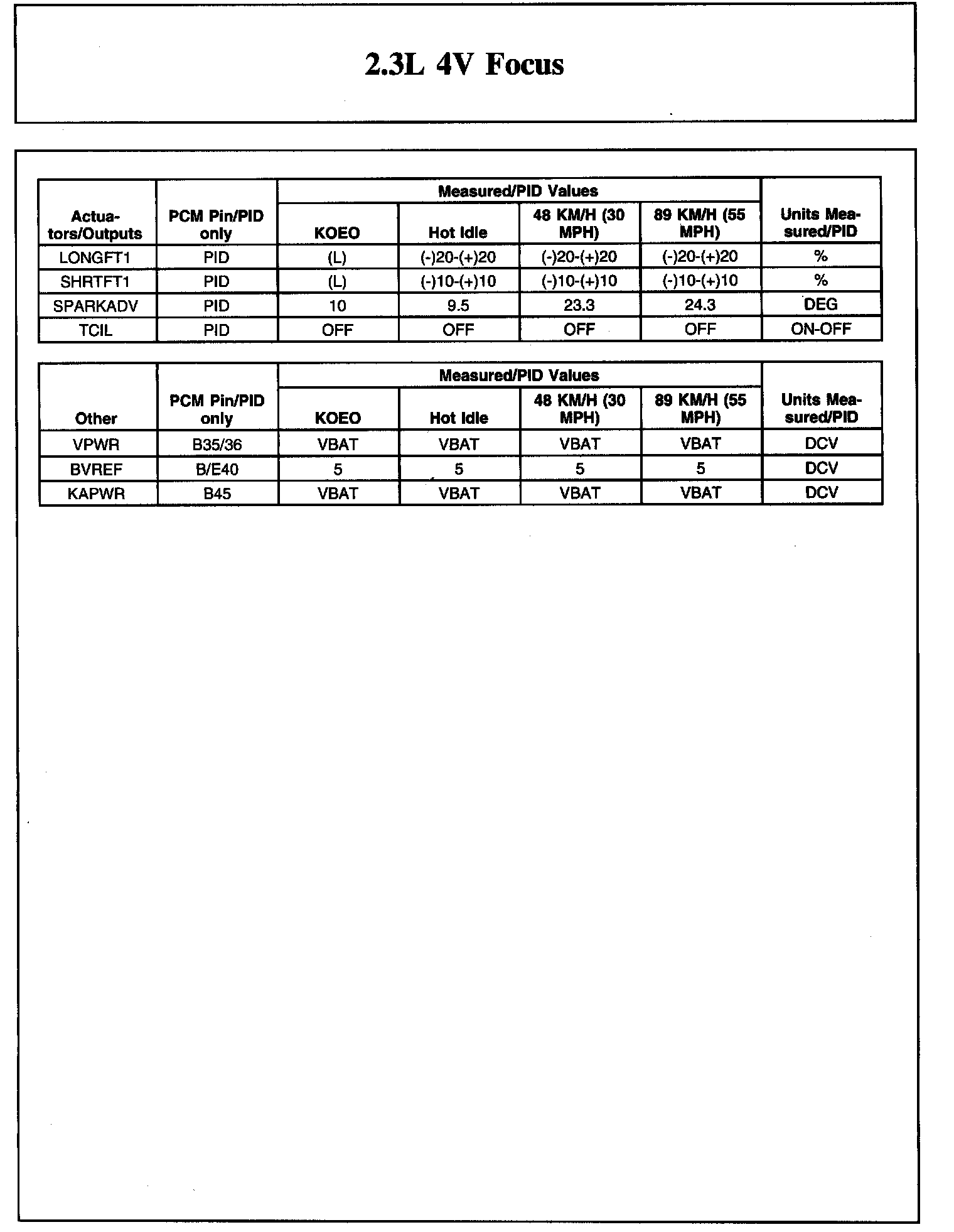 Home >> Ford >> 2007 >> Focus L4-2.3L VIN Z >> Repair and Diagnosis >> Powertrain Management >> Computers and Control Systems >> Testing and Inspection >> Scan Tool Testing and Procedures >> Typical Diagnostic Reference Values