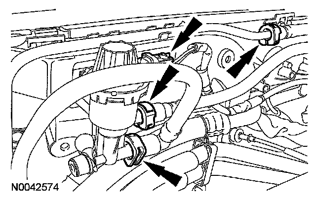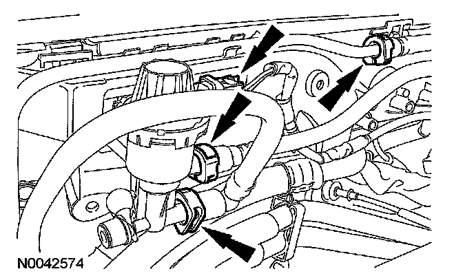 10. Disconnect the fuel tubes and the evaporative emission (EVAP) canister purge valve electrical connector