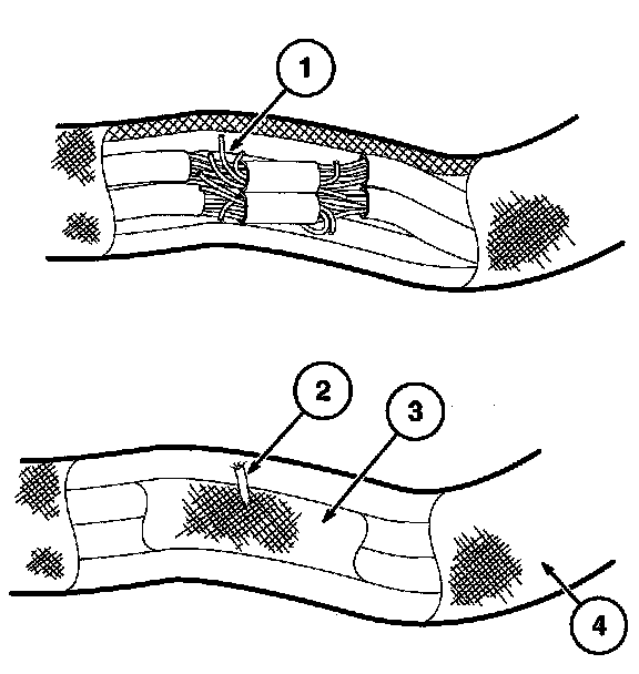13. Use shielded heat gun to heat the repaired area until adhesive flows out of both ends of the heat shrink tubing.