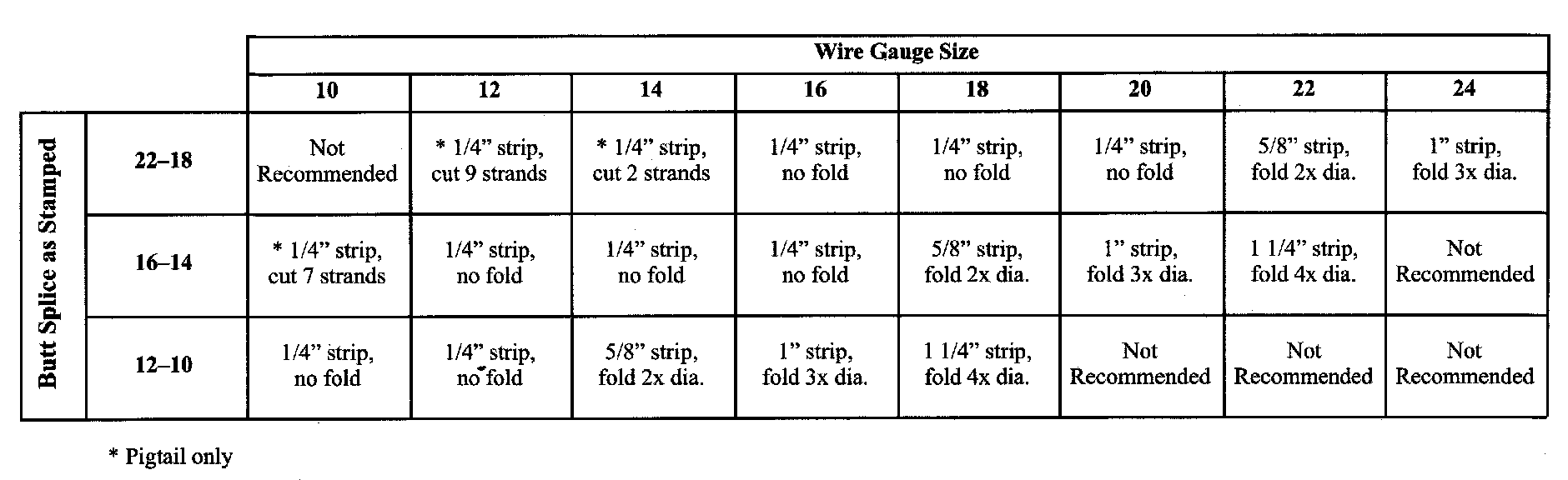 Recommended splicing method - Crimp (For 10-22 AWG Diameter Wire to Like Wire Diameter)