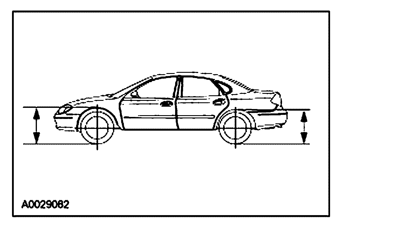 The vehicle ride height can be checked by measuring the distance between the lip of the fender(s) and the ground. The vehicle must be in a level, static ground position with full