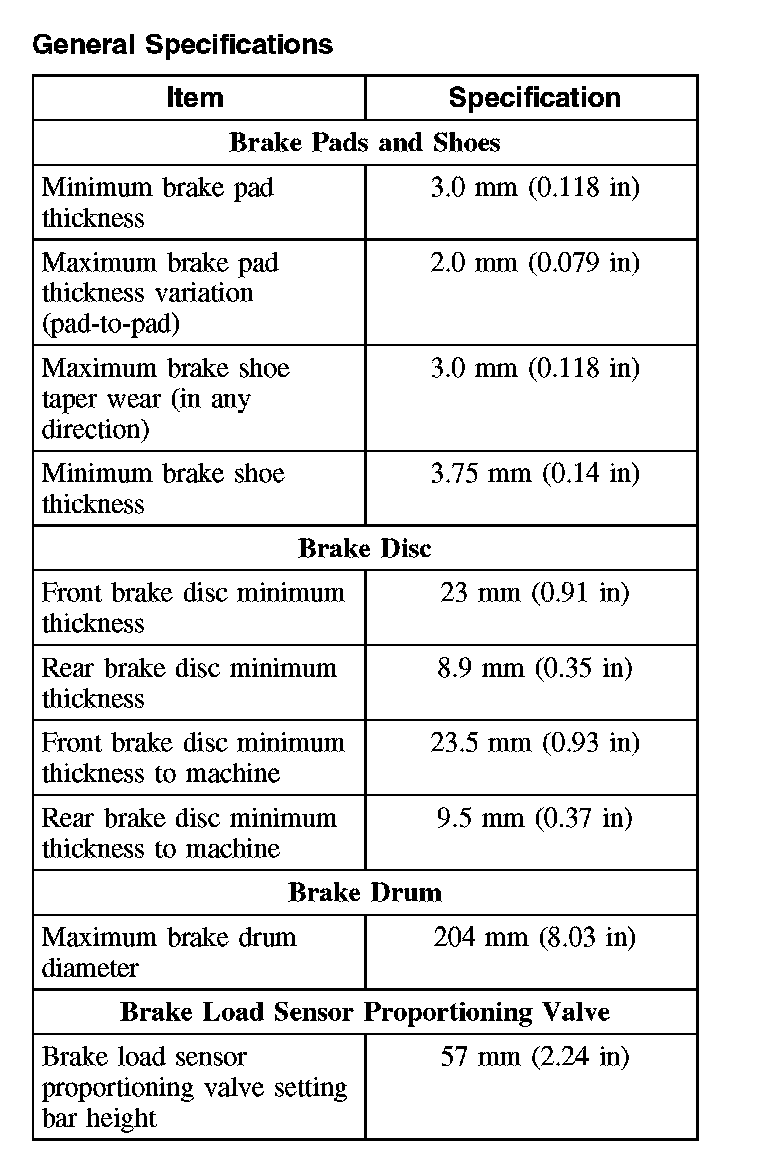 Rear Disc Brake Specifications: