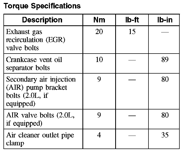 Torque Specifications: