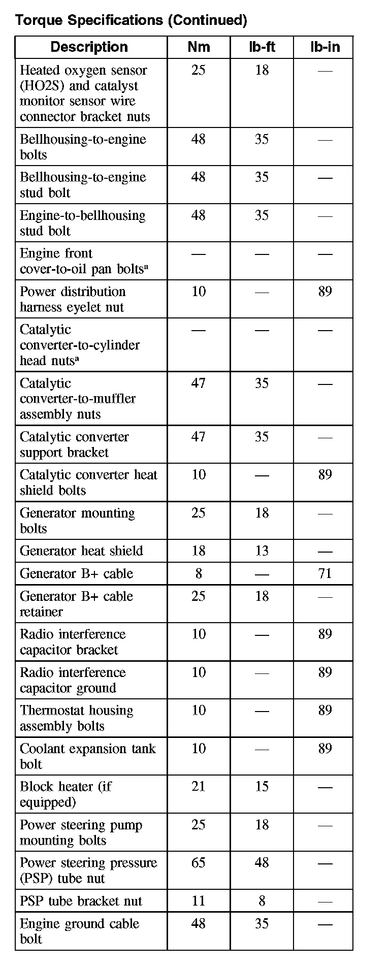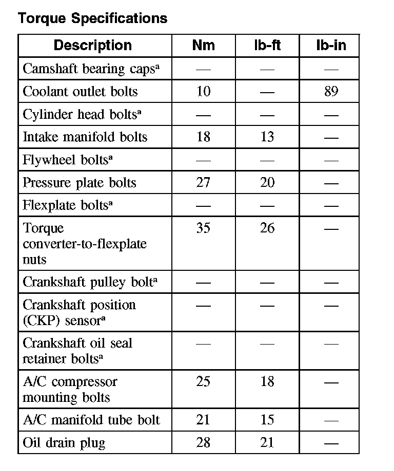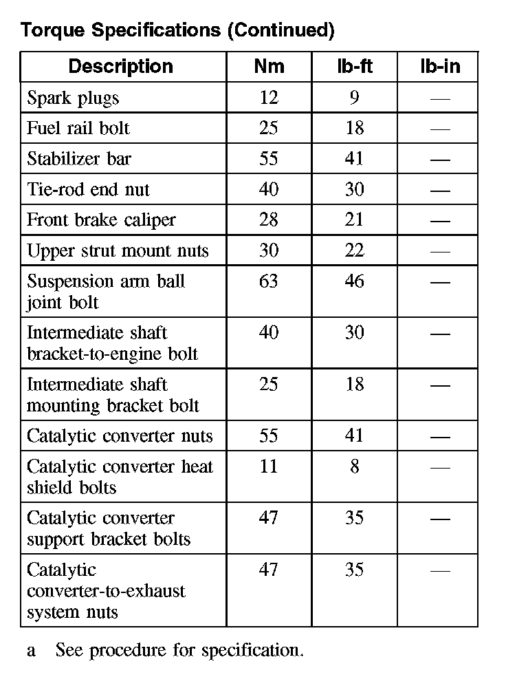 Torque Specifications
