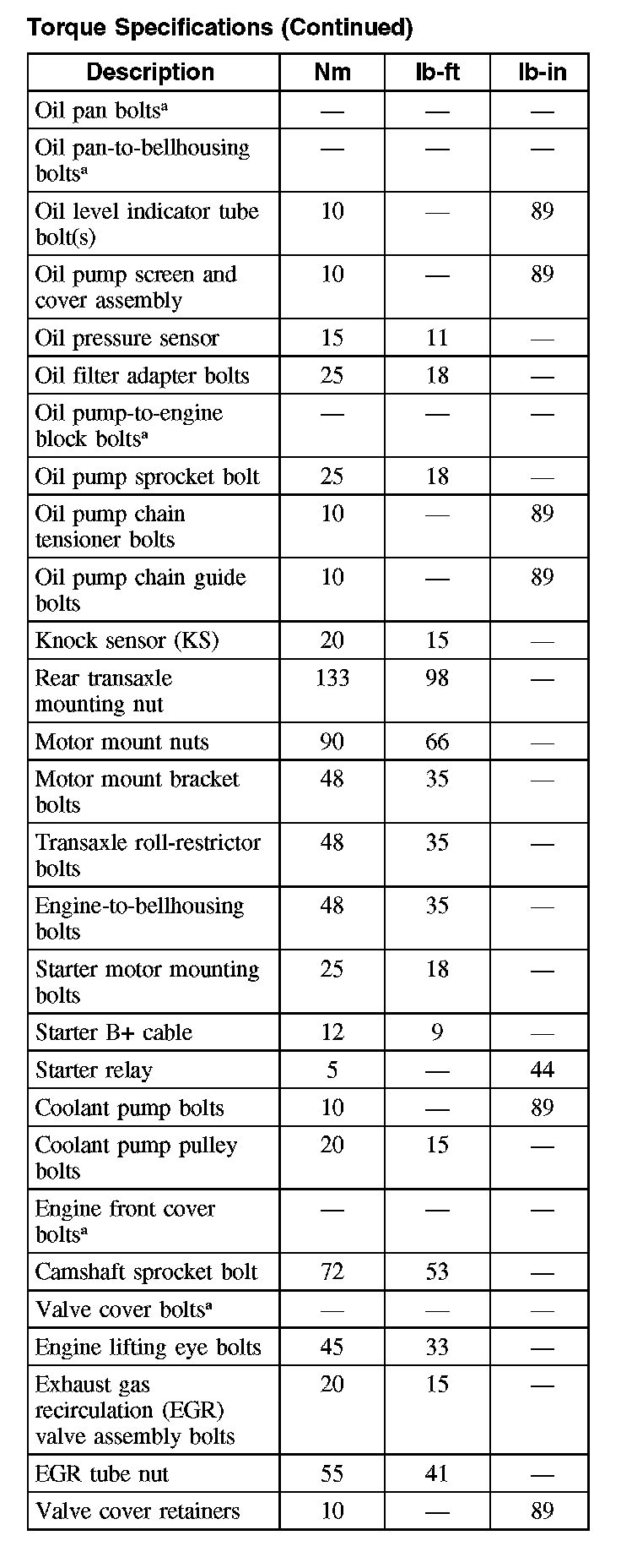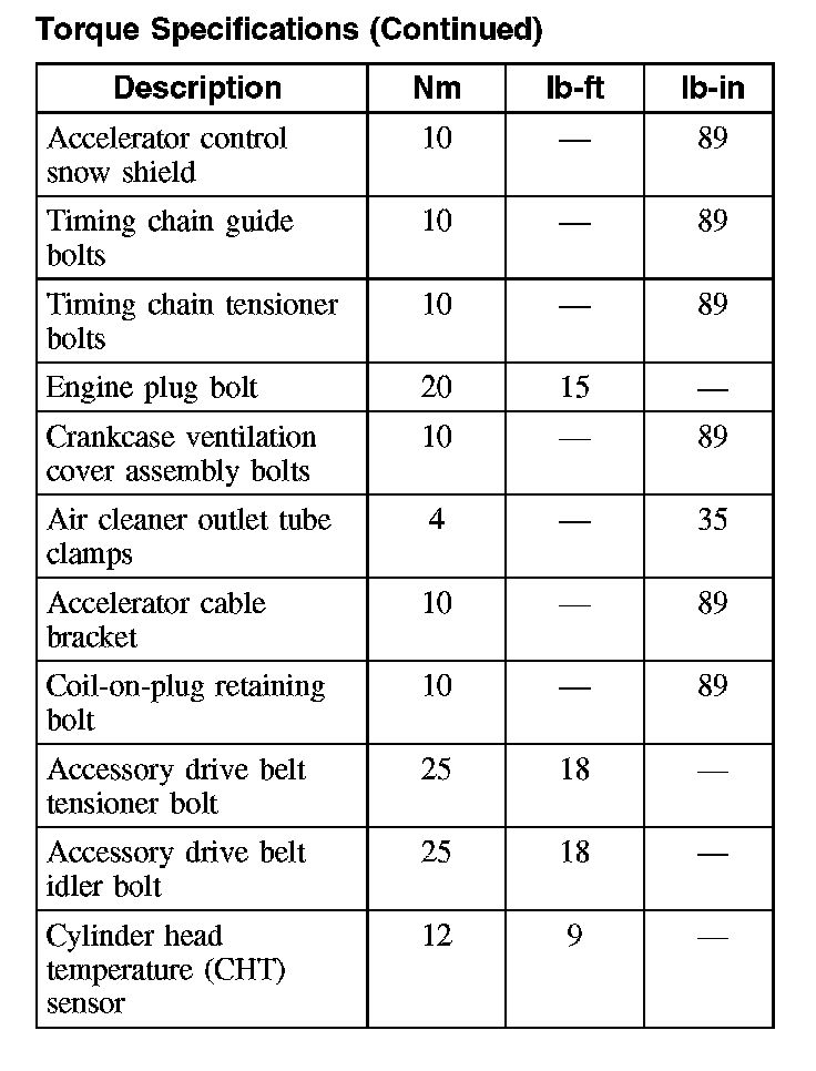 Torque Specifications: