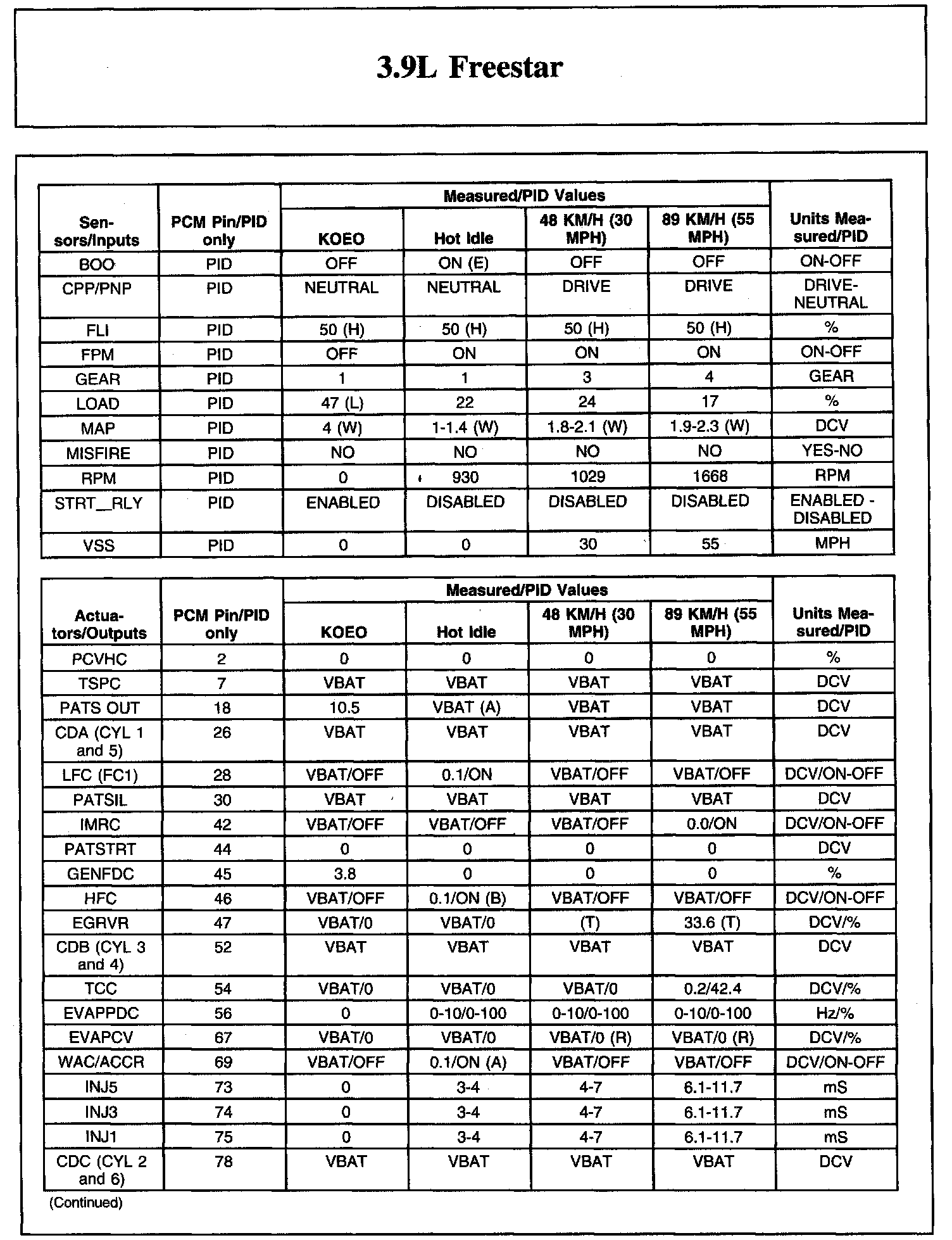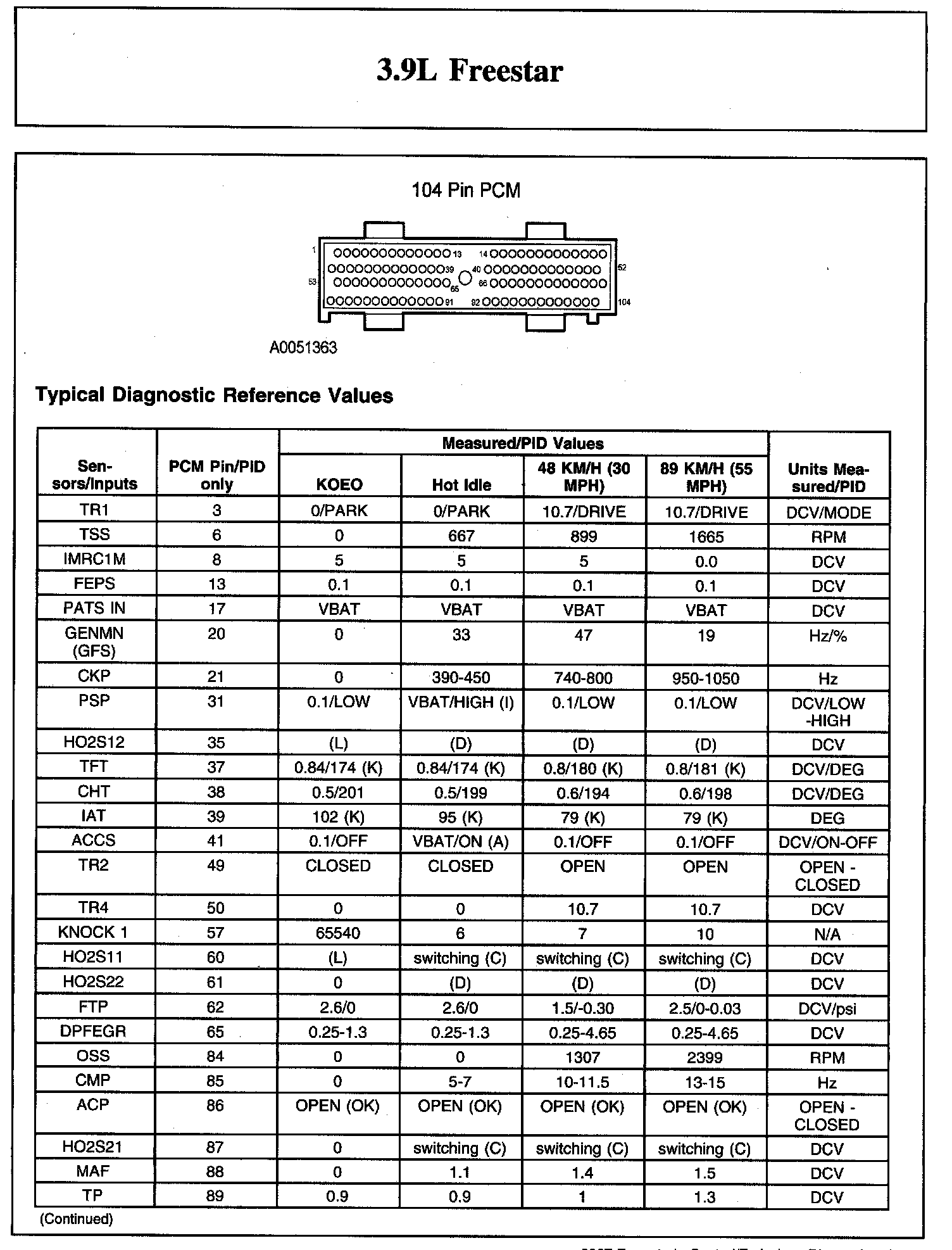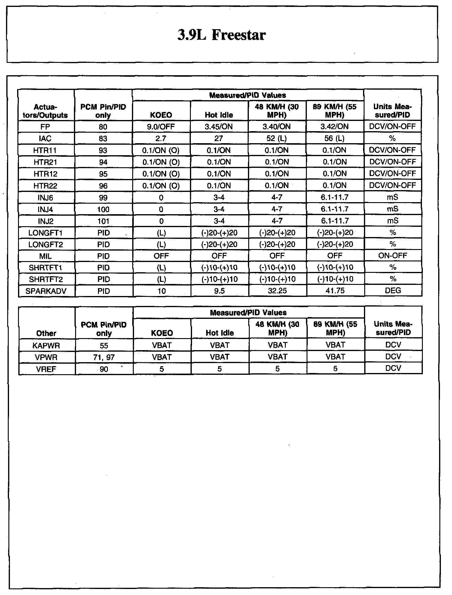 Home >> Ford >> 2007 >> Freestar V6-3.9L VIN 6 >> Repair and Diagnosis >> Powertrain Management >> Computers and Control Systems >> Testing and Inspection >> Scan Tool Testing and Procedures >> Typical Diagnostic Reference Values