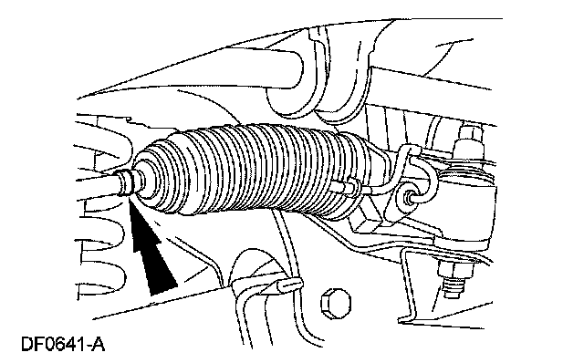 6. NOTE: Do not allow the steering gear bellows to twist when the front wheel spindle tie rod is rotated.
