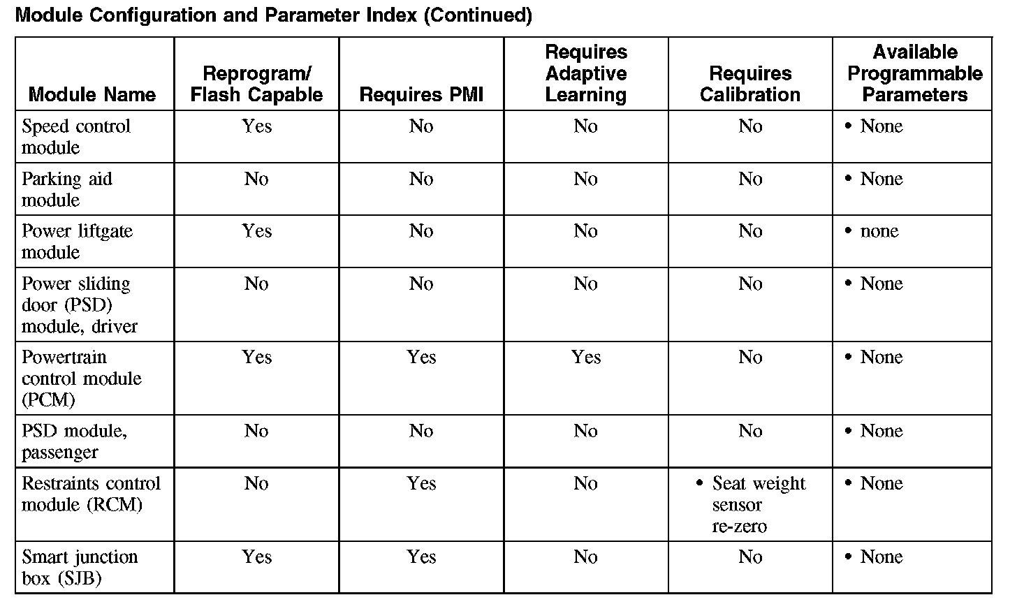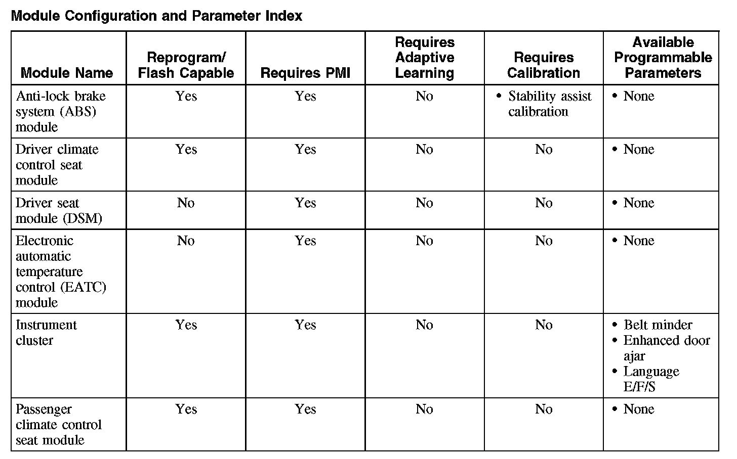 Home >> Ford >> 2007 >> Freestar V6-4.2L VIN 2 >> Repair and Diagnosis >> Powertrain Management >> Computers and Control Systems >> Information Bus >> Testing and Inspection >> Initial Inspection and Diagnostic Overview >> Module Configuration >> Principles of Operation