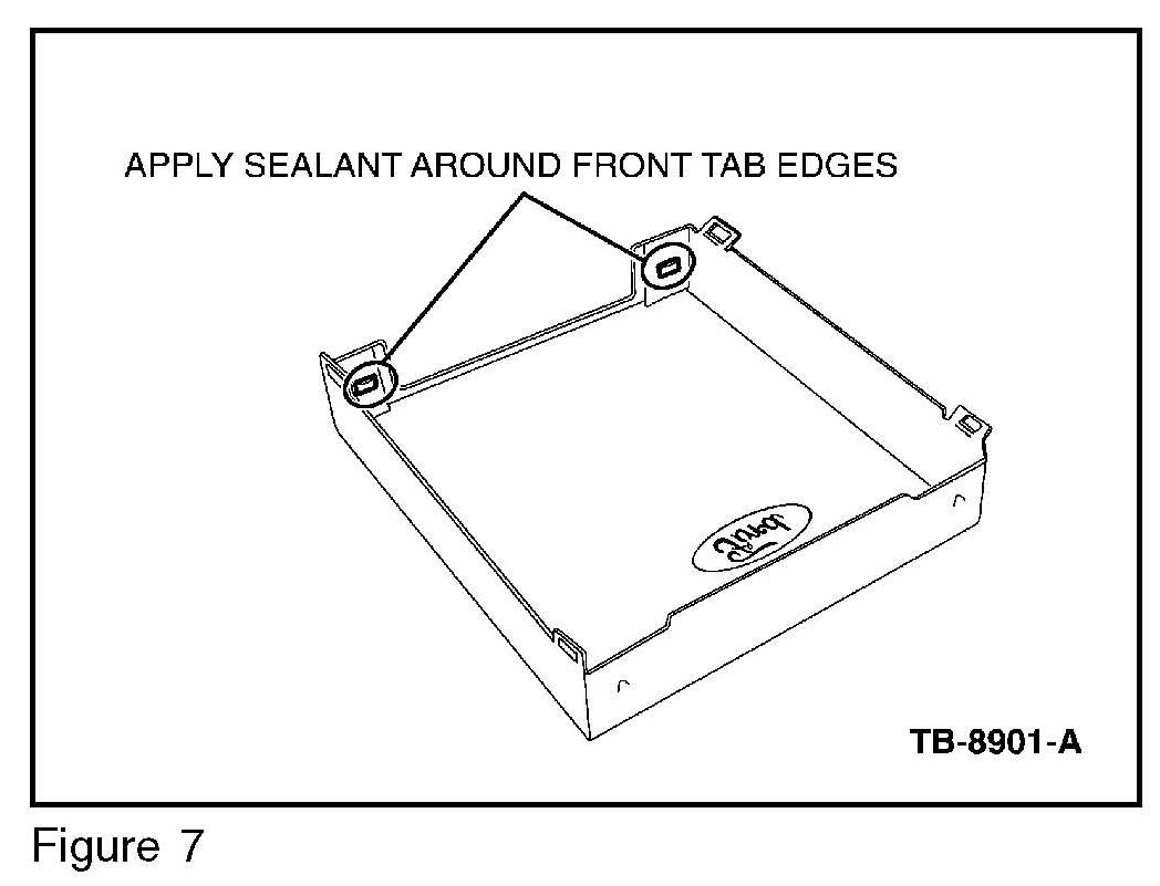 8. Apply Motorcraft(R) Ultra Silicone Sealant to all edges depicted. (Figure 4, 5, 6, 7) Proceed directly to Step 9 - do not let the sealant skin over.