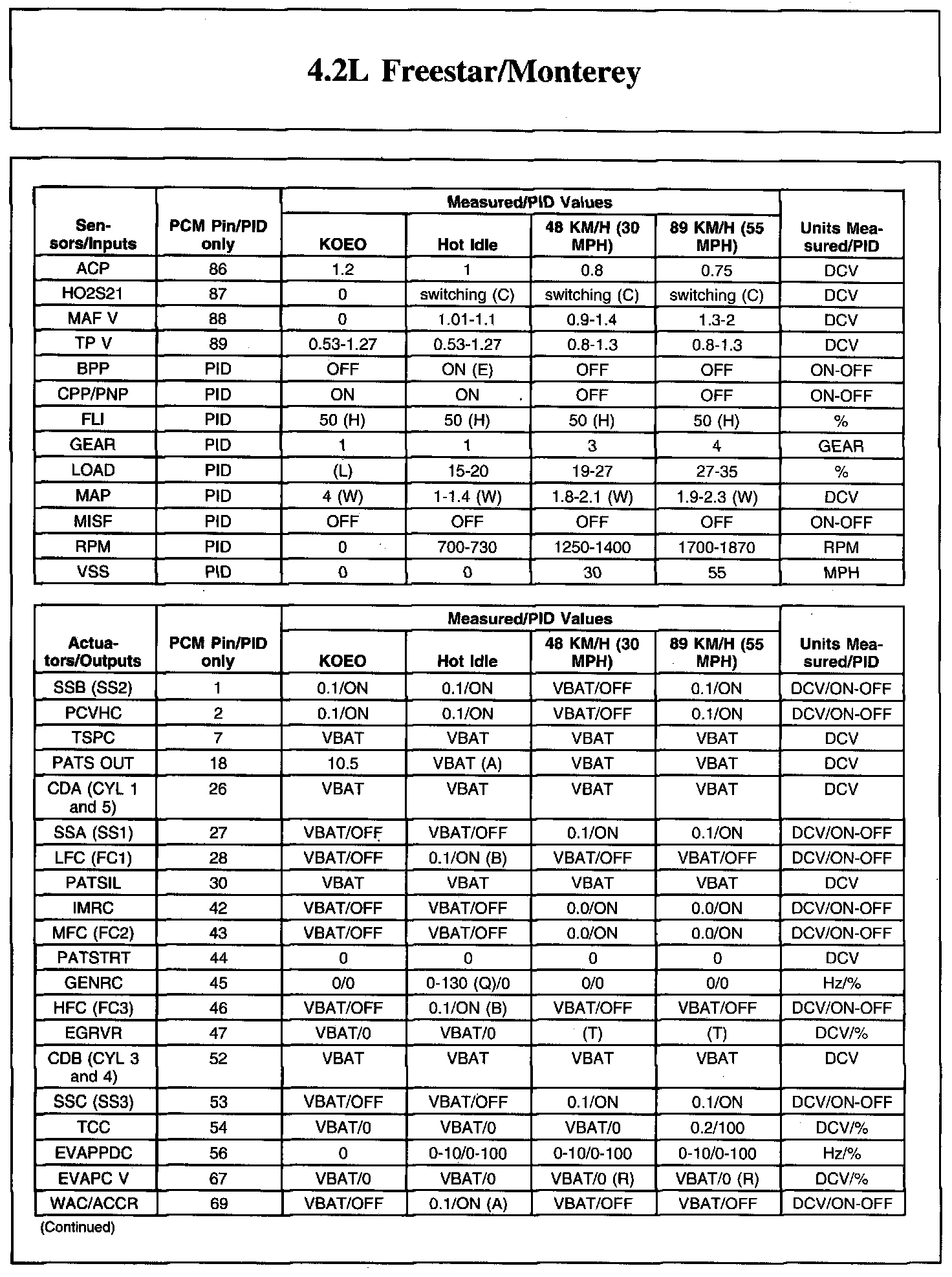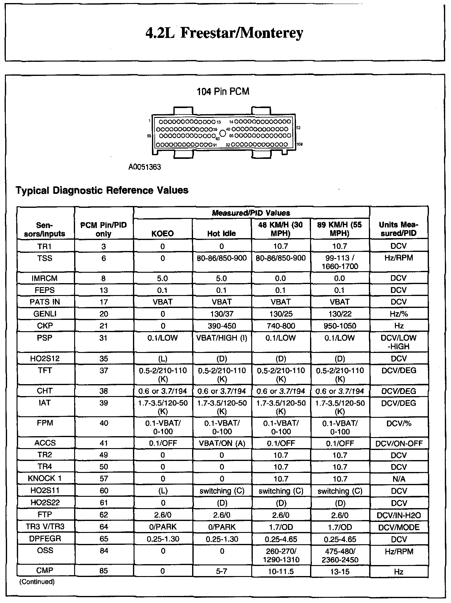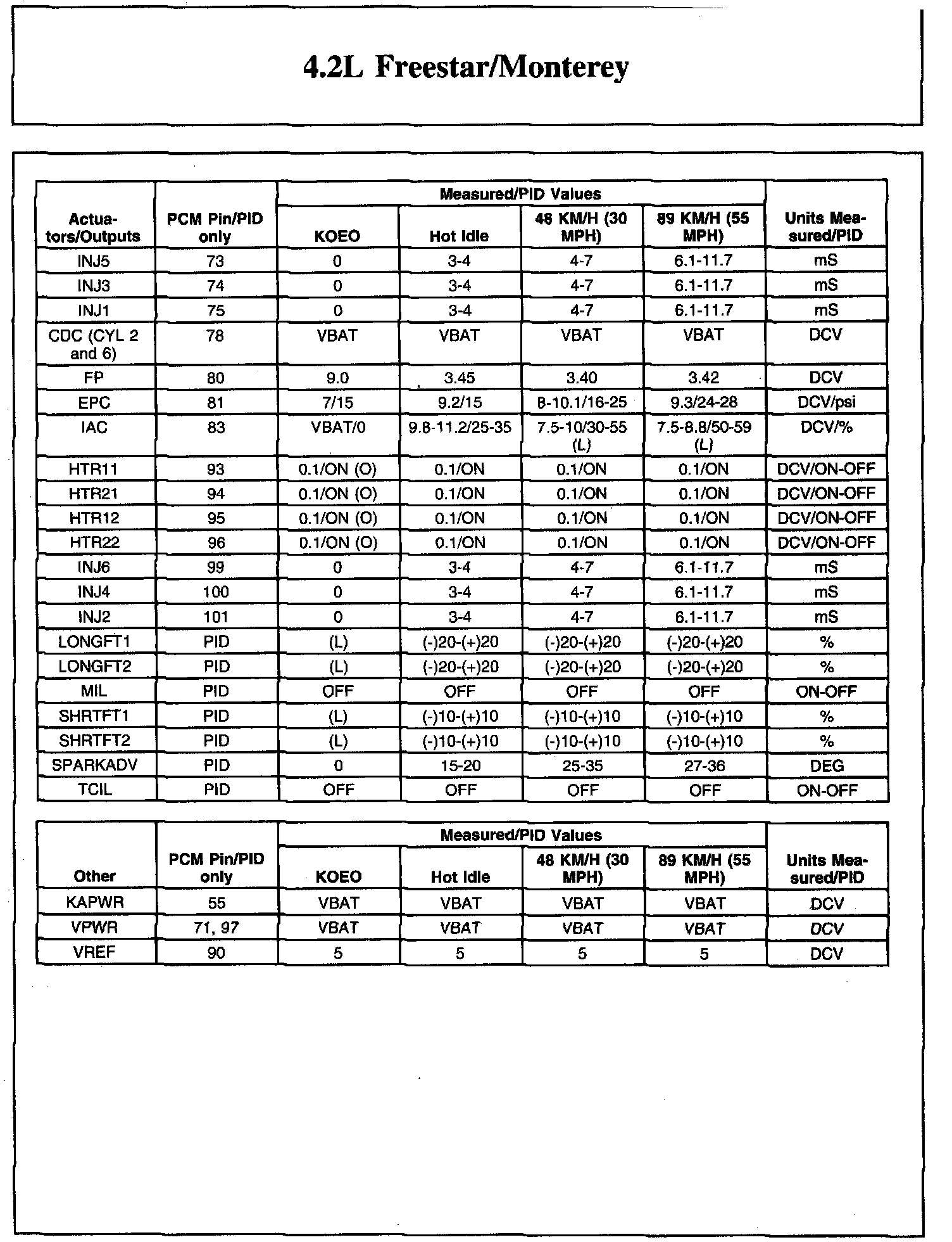 Home >> Ford >> 2007 >> Freestar V6-4.2L VIN 2 >> Repair and Diagnosis >> Powertrain Management >> Computers and Control Systems >> Testing and Inspection >> Scan Tool Testing and Procedures >> Typical Diagnostic Reference Values