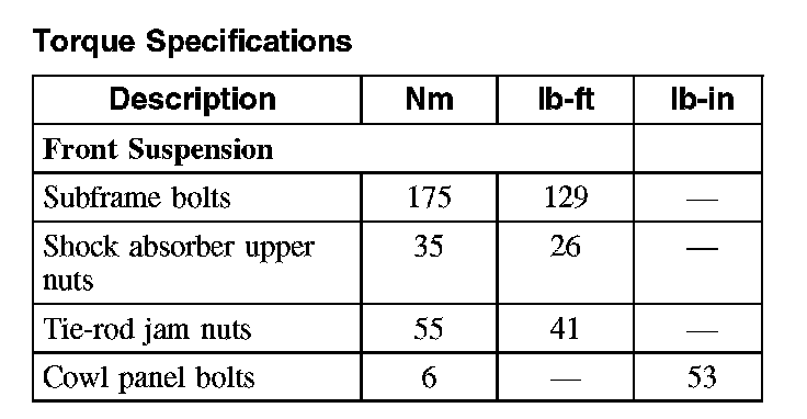 Torque Specifications: