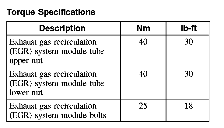Torque Specifications: