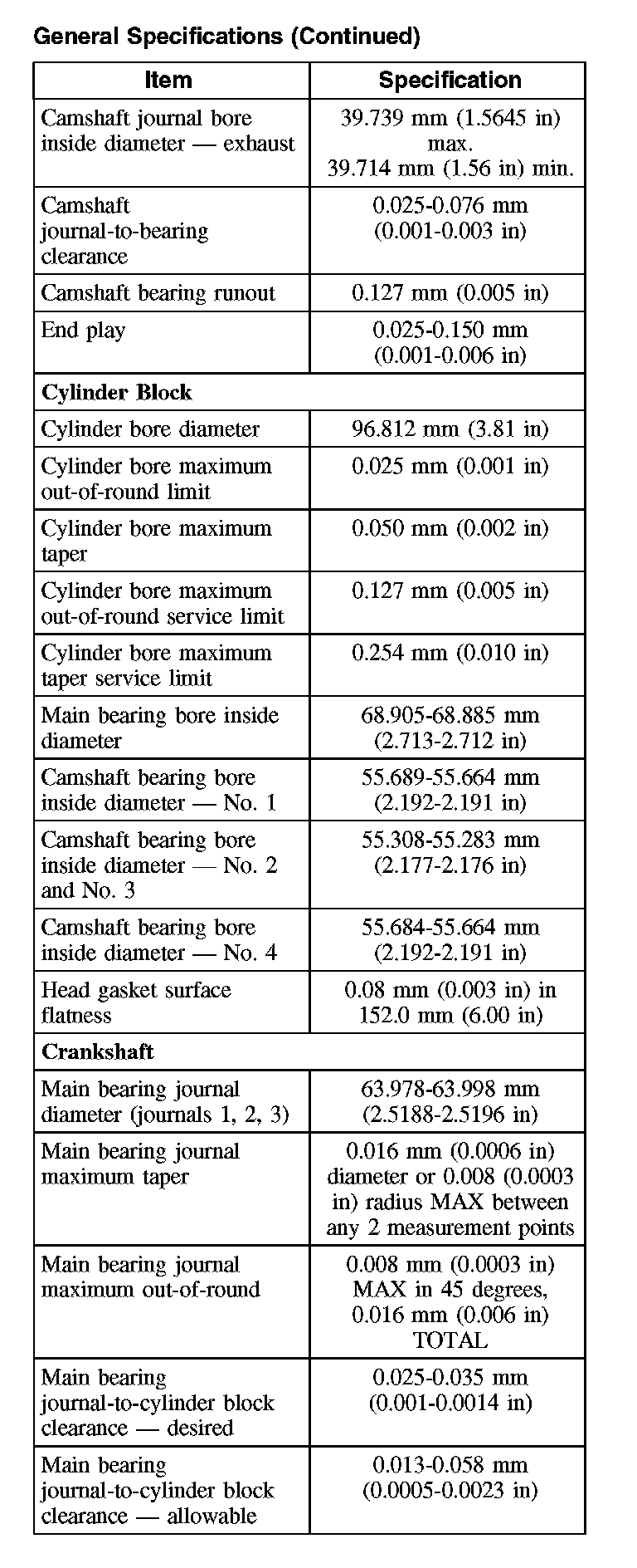 General Specifications