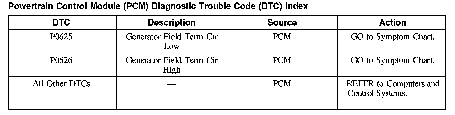 Powertrain Control Module (PCM) Diagnostic Trouble Code (DTC) Index
